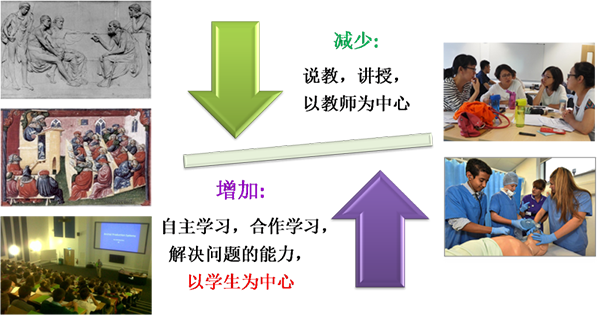 在传统观念里,教学是为了传授知识,教师的主要任务是知识的讲授,“传授知识”、“讲授”正是“以教师为中心”的核心。无论是提高讲授水平、改进授课方式,还是增加与学生专业相关的内容,都是围绕“讲授”、“传授知识”下功夫,整个教学仍然是“以教师为中心”,而这种模式已经不能满足当前社会发展的要求和学生发展的需求。一是二战后的知识大爆炸,导致知识更新换代加速,在学校里学习的专业知识,很快就无法满足毕业后的实际要求;二是上个世纪末互联网的兴起,使获取知识的途径极大地丰富,学生可以随时随地不受限制地接触到丰富的教学资源,对传统教学模式造成巨大的冲击;三是当今社会在团队协作、解决问题的能力方面对学生的要求越来越高,而传统教学模式很少涉及这些能力的培养。