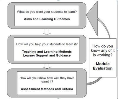 2)课程评价应该是教学过程中的一部分,且应与学习成果紧密联系,其关系如下图所示: