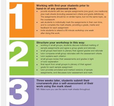 4)课程评分实践:要求每位学员对提供的哈珀亚当斯大学学生作业材料各自阅读、打分,并阐述打分原因;而后小组讨论,教师进行总结;