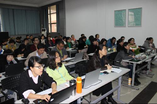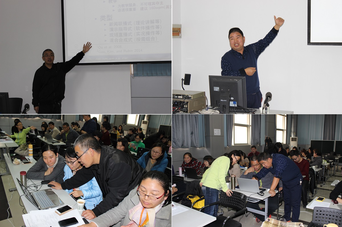 下午的录屏软件使用部分由耿楠、杨江涛两位老师共同讲解。简要介绍微视频的概述、微视频设计及多种类型的脚本设计,围绕教师使用录屏软件制作微课遇到的问题,重点讲解如何使用Camtasia Studio录屏软件进行微课录制与编辑方法。两位老师采用一人讲解,一人实际操作的方式,一步步带领大家制作、修改、完善自己的微课作品。参训教师纷纷提出自己在制作过程中遇到的问题,两位培训老师耐心、认真的回答和解决每位教师所遇到的困难。
