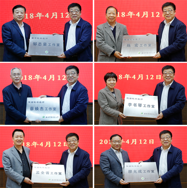 为充分发挥教学名师的示范引领带动作用,全面提升教师培养质量,切实提高人才培养质量,4月12日,校长吴普特分别向国家级教学名师邹志荣教授,省级教学名师陈宏教授、蔡焕杰教授、李书琴教授、孟全省教授、廖允成教授等6位教学名师领衔的首批“名师工作室”授牌,标志着我校首批教学名师工作室建设正式启动。副校长马建华、罗军参加启动会。