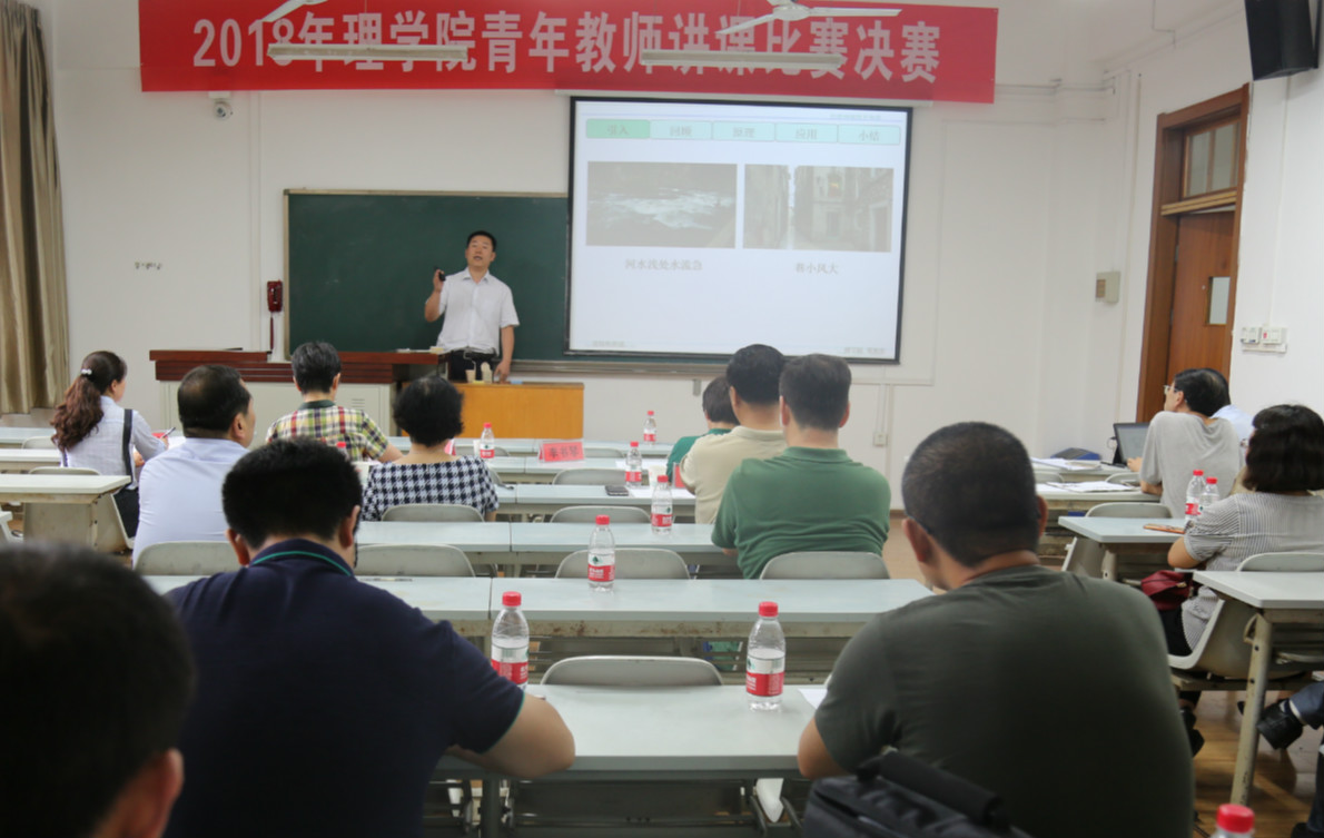 比赛由晋级决赛9名教师展开角逐,现场气氛严肃而热烈。各参赛教师选取本学期所承担课程进行授课,选手们教学技术运用娴熟、语言表达妙趣横生、逻辑推演严谨缜密、教学节奏张弛有度,完美展现出理学教师教学风采。各评委对参赛教师进行现场点评,从加强教学引导启发、板书与多媒体有效融合、概念推导与实例引入时机、知识传授与育人有机结合等方面指出其特点并提出专业性建议。根据教学设计与现场授课总评成绩,最终推选5位教师参加学校复赛。