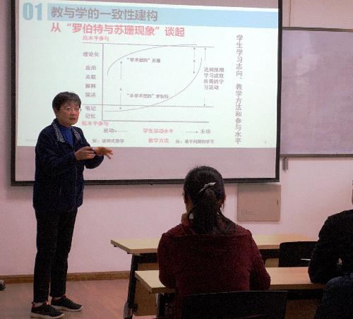 报告会上,朱玮教授从美国教育心理学家M.David Merrill提出的e3学习模式入手,分析学生学习规律,并通过教与学的一致性建构、设计有意义的学习经历、一门课程的对接设计等四大模块,讲解如何以学为中心提高学生学习成效,如何创造有效的教学情境促进学生主动学习,并以“罗伯特与苏珊现象”及诸多实际教学案例为主深入浅出的分析了如何聚焦学习行为,以便提高教学效果。