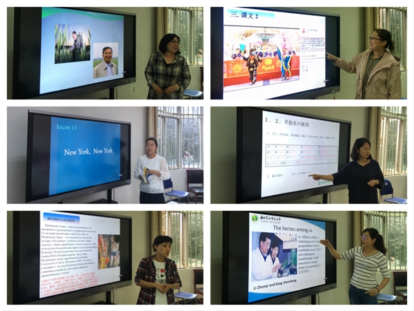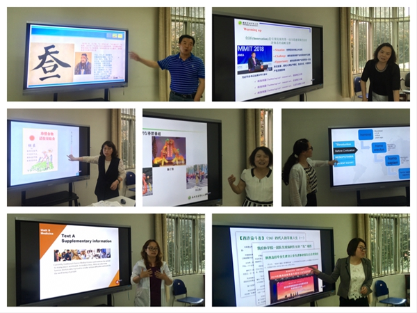 活动中,来自日、俄、法、英四个语种课程的13名教师进行了一个“课程思政”教学典型案例的说课。说课案例涉及了硕士公共英语、大学英语、大学拓展课、日语二外、俄语二外、法语二外等各个层次的课程。老师们准备充分、全心投入,立足所教授课程的学科特点与教学内容,梳理课程所承载的育人功能,深挖课程中蕴含的思政元素。在教学目标的定位上、教学内容的选择上、教学环节的设计上下足了功夫。在每位老师15分钟的说课中,老师们进行了精彩的、各具特色的教学过程展示,教学目标明确、课件制作科学规范、重点突出、条理清晰。老师们着重阐述了思政元素与教学内容的结合,突出强调了知识传授与价值引领的有效融合,充分挖掘教学内容中的思政与育人元素,如古丝绸之路、中国传统文化、公民意识、生态保护、创新精神、科学家的责任、西农精神等等。