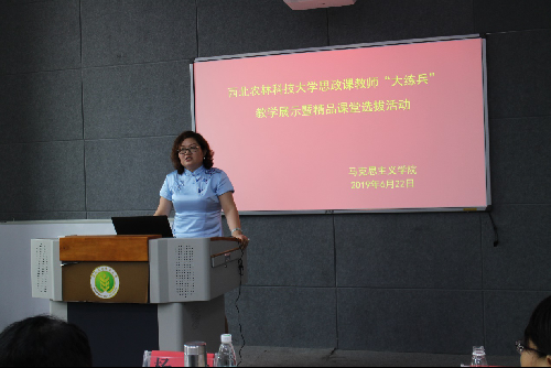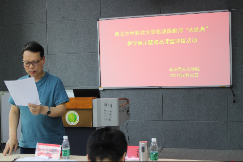 按照陕西省教工委《关于进一步推进陕西高校“四好”思政课创优行动的通知》和西北农林科技大学《 关于开展2019年“思政课教师大练兵与课程思政建设”主题活动的通知》的安排,2019年6月22日上午,西北农林科技大学思政课教师“大练兵”教学展示暨精品课堂选拔活动在南校区数字化楼123A智慧教室举行。