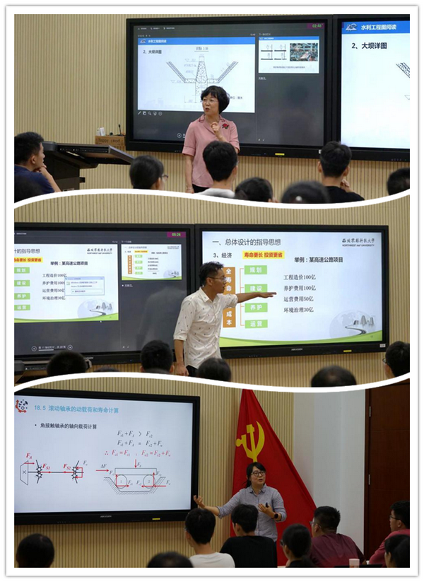 在《画法几何与工程制图》课程中,裴金萍老师以师生熟知的杨凌水源地石头河水库为例,讲述了水利工程图的内容和制图分类,将保护水源的责任意识贯穿到课程的全过程。郝伟老师从我国公路发展历程说起,以丰富的示例讲授了我国公路设计的指导思想,充分展了我国基建强国的自豪感,将思政元素完美融入到《道路勘察设计》专业课程中。2018年省课程思政竞赛二等奖获得者机械与电子工程学院寇小希副教授从滚动轴承在日常生活中的密切性和重要性入手,带领大家一起探究滚动轴承相关的设计计算原理,将枯燥的机械设计、公式推导讲授地生动多彩。