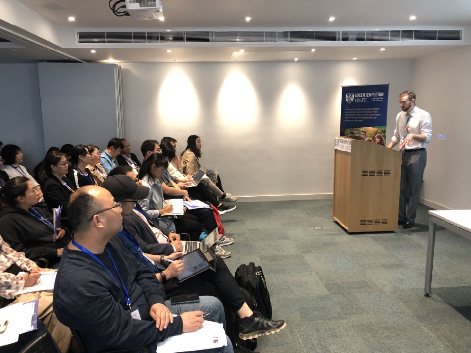 本次研修活动主要在牛津大学进行。牛津大学在人文科学、社会科学和自然科学等多个学科领域拥有崇高的学术地位及广泛的影响力,被公认为是当今世界最顶尖的高等教育机构之一。当地时间8月12日,研修班第一堂课在格林坦普顿学院正式开始。课上,牛津展望计划项目负责人Lynn Robson教授就牛津城历史、牛津大学管理与教学方法进行了介绍,为大家详细讲解了牛津大学书院制度下的教学特色—导师制。导师制是实现课堂教学与学生个性化培养有效的结合,一对一的研讨式教学不但能促进师生之间思想碰撞,建立良好的师生关系,也能有助于培养学生主动思考、分析和表达能力。Emma Murray为学员们介绍了英国的文化与礼仪。下午,学员们实地体验了牛津大学各学院的教学环境。课后,学员们纷纷表示开班第一天的学习既充实又很有收获,也对接下来的学习充满了期待。