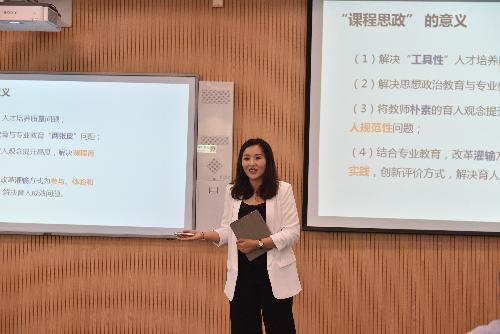 课程思政专题培训由陕西省课程思政教学标兵李侃侃主讲。李老师从“为什么要开展‘课程思政’?”入题,结合自身的经历,阐述了开展 “课程思政”的意义和必要性,随后又分别以不同学科的“课程思政”案例作为切入点,通过对案例的讲解,让新教师对开展课程的“课程思政”具体做法进行了直观了解。马克思主义学院李莉认为,在新进教师岗前培训中加入“课程思政”专题,有助于新教师树立“立德树人”的教育理念,促进教师把知识传递和价值引领有机结合起来,真正培养出国家需要的人才。