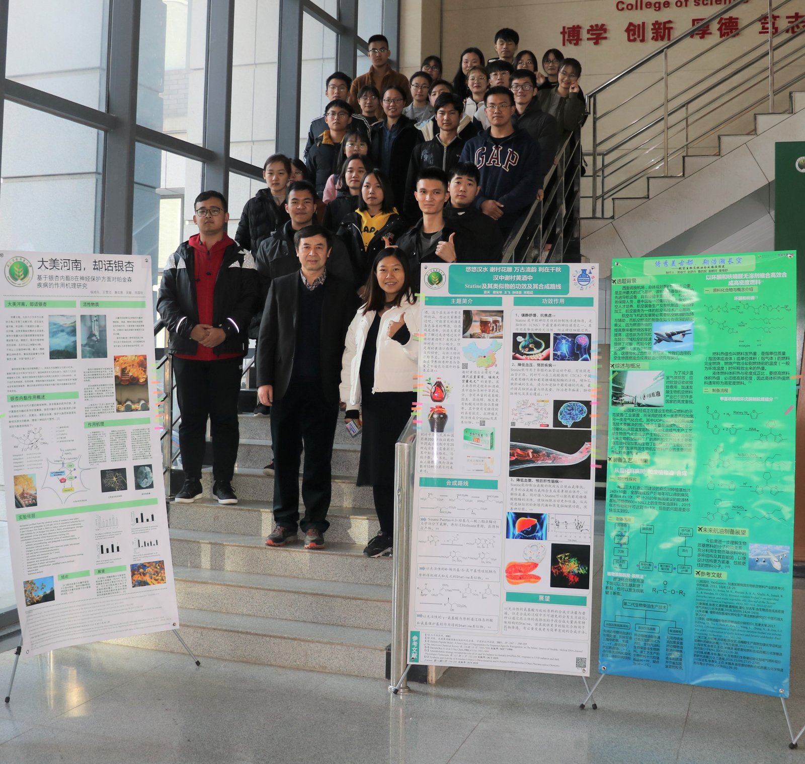 2019年12月3日下午,化药学院在理科楼一楼大厅举办“我的家乡与化学”海报展,来自应用化学专业18级的同学们展出了11份精美作品,包括“蒿草青青,呦呦晚鸣——以生物合成与化学合成结合的策略由单糖合成复杂天然产物青蒿素”;“安徽霍山软黄金-石斛,关于其对癌细胞的抑制作用”;“尼古丁,致命or治病——刚性尼古丁类似物PHT的合成思路”;“揭秘山东阿胶——阿胶药效与性质研究”;“贵州绿茶中槲皮素的抗氧化机制及其应用与展望”;“四川美味佳肴,辣椒独一无二——吃辣椒可以减肥?”;“悠悠汉水,谢村花雕,万古流韵,利在千秋——汉中谢村黄酒中Statine及其类似物的功效及合成路线”;“大美河南,却话银杏——基于银杏内酯B在神经保护方面对帕金森疾病的作用机理研究”;“倚秀美古都,翔浩瀚长空——航空生物质燃油合成路径探究”;“神草三七之乡,秀美神奇文山——NGR1在缺血缺氧条件下对神经细胞的保护作用机制”;“秦巴明珠,生态安康,康硒拐枣,品牌陕西——二氢杨梅素新型药物的构建以及对肝癌细胞的靶向治疗”。每件作品的字里行间都流露出浓浓的家国情怀,同学们用自己的专业知识,从全新的角度,诠释了家乡的美,家乡的韵,和对家乡的情。
