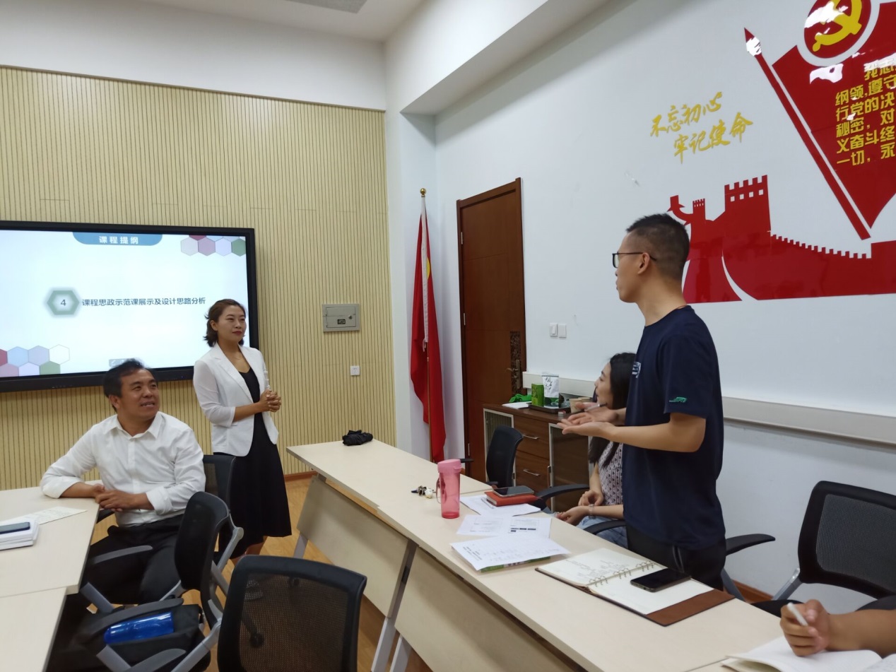 尹老师的报告围绕“课程思政大练兵”和专业课课程思政示范课的建设两条主线,结合自己开展“课程思政”的工作经验与生动案例从思政元素的挖掘与融入策略、教学设计原则、课程思政示范课的教学展示与设计思路分析等方面进行分享,润物无声却有滋有味,如盐入水。报告会内容精彩纷呈,现场互动热烈,土木系新进教师青年副教授孟敏强、茹含、侯晓萍、任文渊等几位老师就课程思政练兵活动中的章节选择、思政点挖掘与凝练、融入形式与时机、课程思政建设中遇到的实际问题等方面与尹老师进行了交流和探讨。