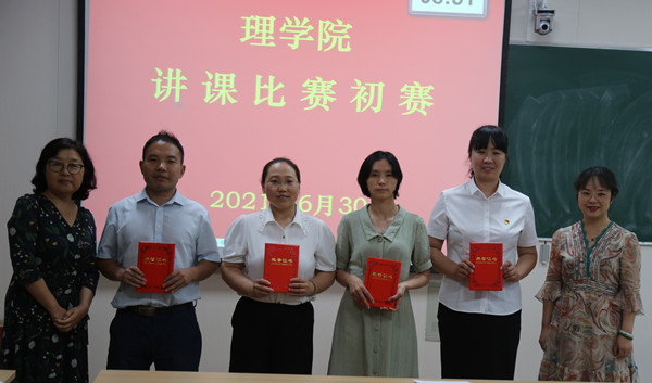 与座评委从教学设计、授课仪态、课程内容、讲课效果等多方面对参赛教师进行细致点评。他们对参赛教师扎实教学基本功认可的同时提出细节注意事项,涉及PPT设计技巧,课程讲授导入时间,小结拓展升华,课程思政融入等方面。经评审打分,潘琼、魏宁获学院讲课比赛一等奖,宋菲、杜炜、吴素芝、张治江获学院讲课比赛二等奖。评委给获奖教师颁奖并合影留念。