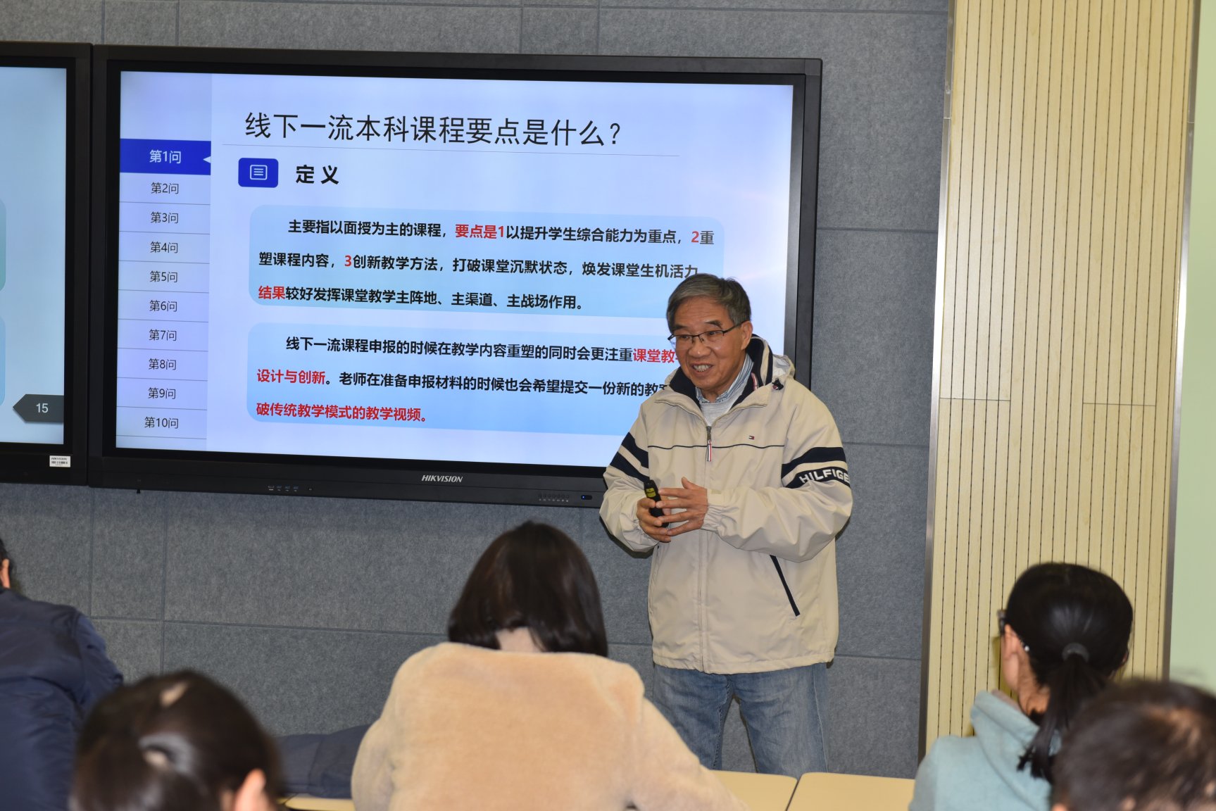 19日上午,刘曙东教授从“什么是说课”、“说课的要点”和“说课要素”三方面系统讲述了“怎样说课”。智慧树康祺总监结合大量实例从文件解读、申报材料、10分钟说课视频和课堂实录视频四个方面详细阐述了平台角度下一流本科课程的政策及申报准备。21日下午,冯博琴教授从“建设中国金课”切入,以“十问——国家级一流课程申报”为题,根据一流本科课程的申报要求、条件和审查指标,结合线下一流本科课程和混合式一流课程的基本要点,通过对10分钟说课、教学设计样例撰写、教学实录视频准备和填报注意事项的一一说明,全面讲解了一流本科课程申报各个环节该如何准备,申报书的内容该如何梳理和凝练以及怎样完成申报表的填写。