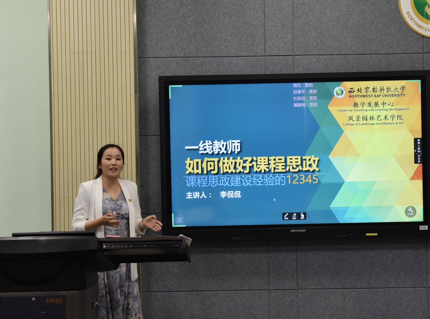 本次专题由教学发展中心课程思政培训团队负责人、园林学院李侃侃副教授主讲,她以“一线教师如何做好课程思政”为题,从“专业课程为什么要思政、怎么思政”破题,紧密结合教育部印发的《高等学校课程思政建设指导纲要》中对专业课程分类推进课程思政建设的要求,结合我校各个学科教师的典型案例,真实还原课程思政设计思路,通过讲述课程思政的一个认识、两个误区、三个原则、四个切入点和五个实施途径,细致地讲解了一线教师如何开展课程思政。随后,她以专业课《雨水花园》建设过程为例,展示了自己不断提高认识的过程中,开展课程改革建设的几个阶段性思考和转变。最后,李侃侃老师推介了我校课程思政在线素材库等学习交流平台。