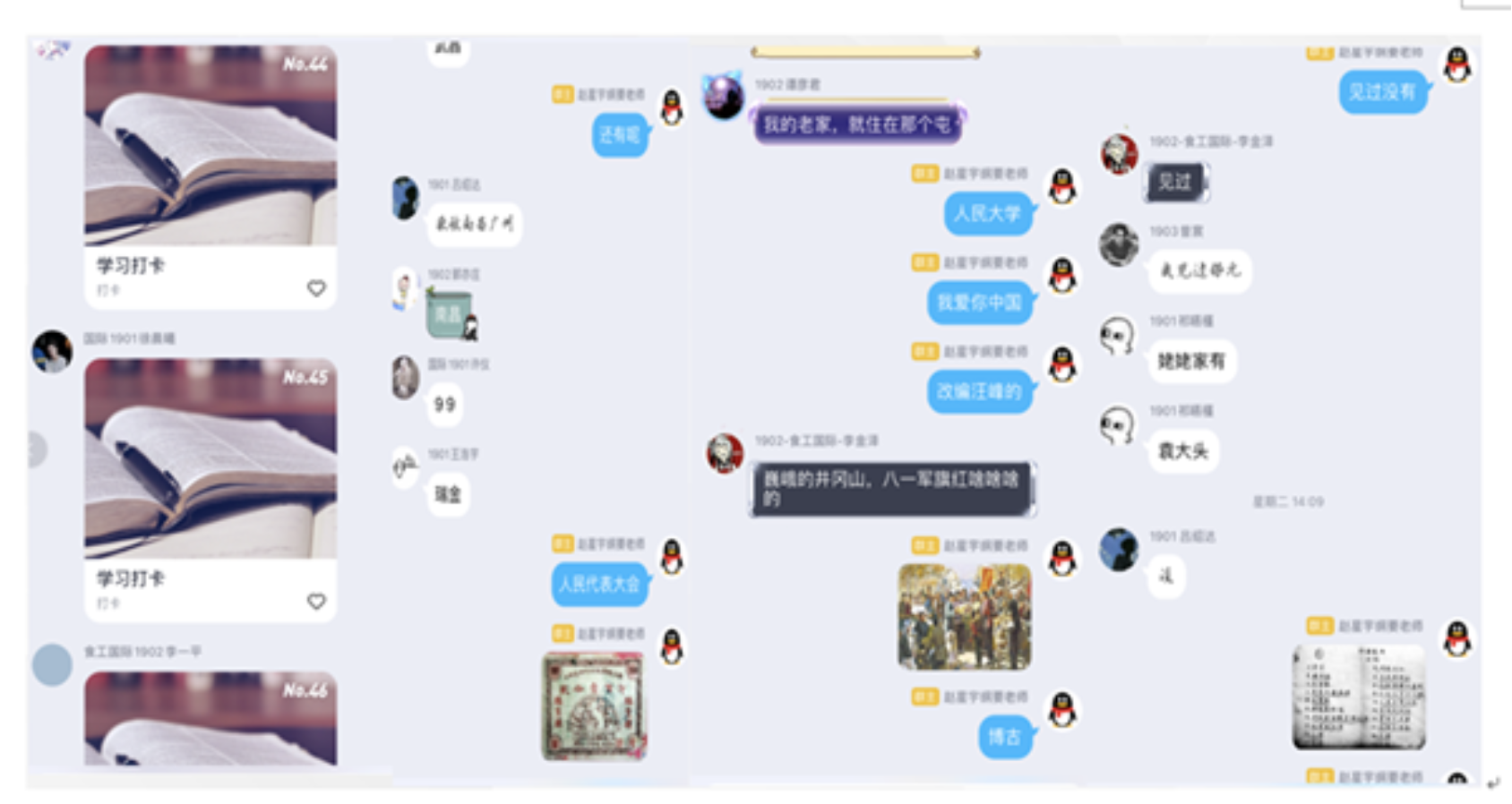 对QQ直播平台可能出现网络拥堵担心,纲要教研室提前做好预案,备选微信、钉钉等平台,在MOOC布置作业和线上讨论的结合互补,以应对可能出现的直播卡顿。当前线上教学已由辅助教学形式变为主要教学形式,需要老师及时转变观念,而学生自主学习“慕课”方式难以满足思政课教学新的形势与要求。中国近现代史纲要课程作为公共基础课,我们选择了理论讲授和辅导答疑直播方式,拉近师生距离,结合新的国情时政,讲好疫情期间的思政课。