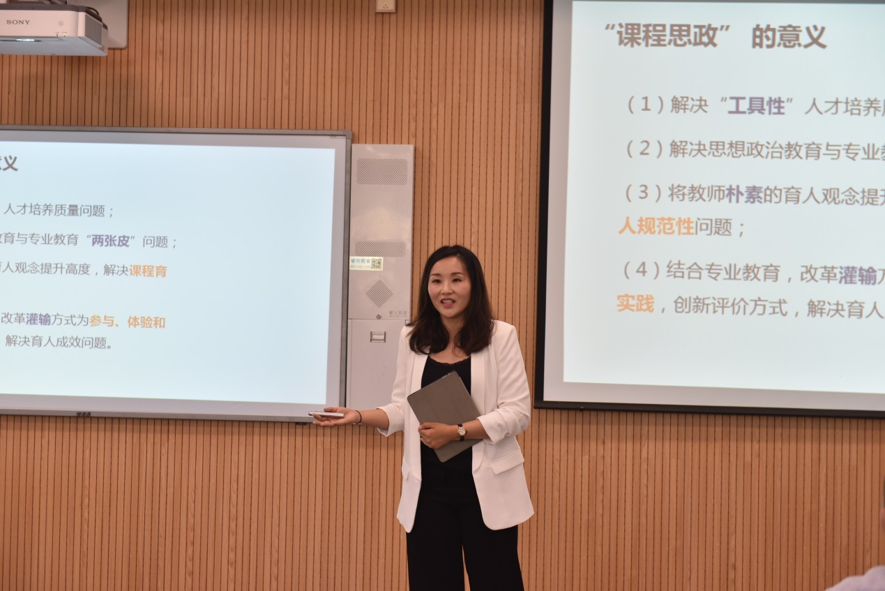 持续强化“课程思政”专题。为了将高校立德树人的根本任务融入课程教学的各环节。2019年岗前培训中持续开展“课程思政”专题培训,我校课程思政培训团队负责人李侃侃副教授以“专业课教师如何开展‘课程思政’”为题,从“为什么要开展‘课程思政’?”入手,结合自身课程思政建设历程,以不同学科的“课程思政”案例作为切入点,让新教师对开展“课程思政”的具体做法有了直观了解,对新教师提高政治站位,开展课程育人奠定了良好的基础。