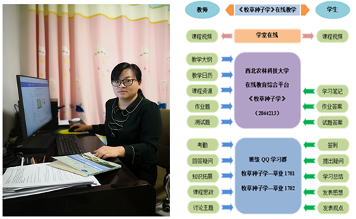 根据《牧草种子学课程质量标准》制定在线教学计划。本课程采用“学堂在线”进行《牧草种子学》课程内容视频学习,使用西北农林科技大学在线教育综合平台向学生发布课程任务,学生通过该平台提交课程作业。利用班级QQ学习群与学生实时交流,了解学习状态和知识掌握情况。通过3个师生互动学习平台多方位地推进本课程的在线教学。