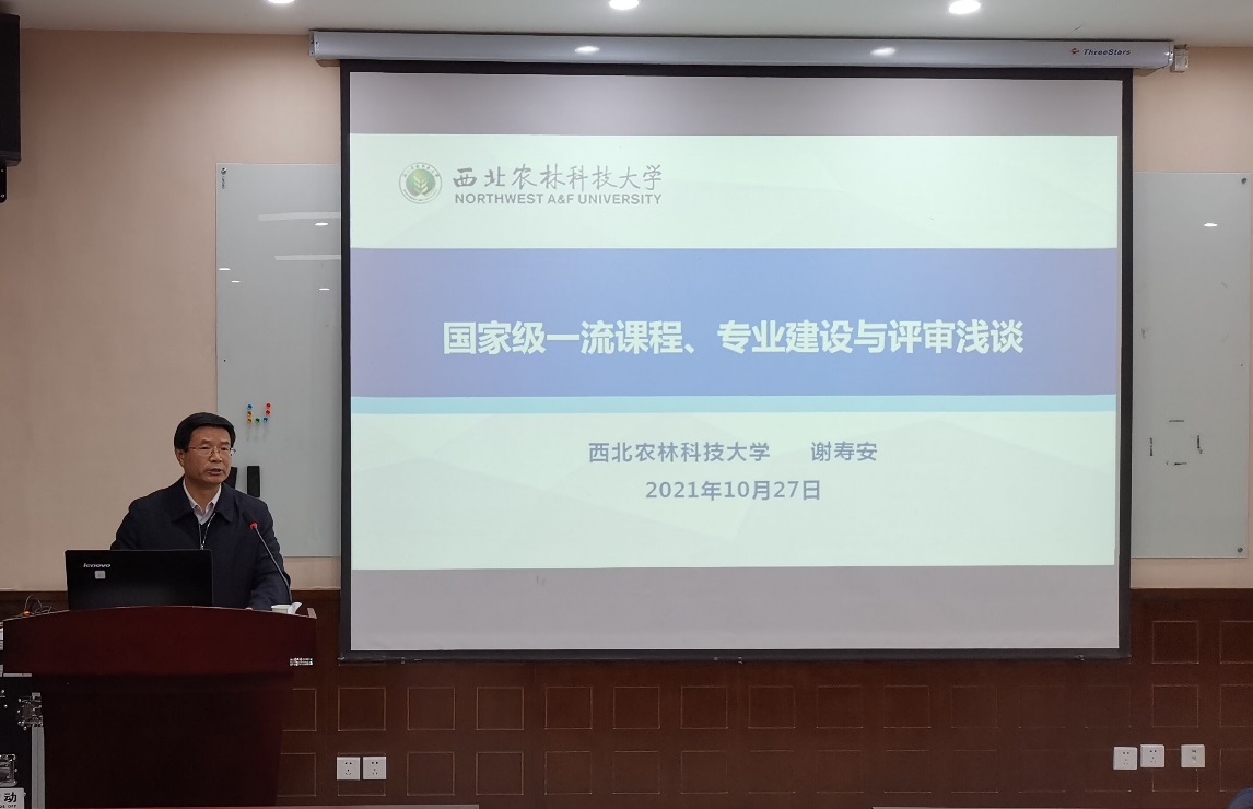 10月27日下午,陕西省省级教学名师、校教育发展中心副主任谢寿安教授应邀为人文学院作一流专业和一流课程建设专题培训。学院党委书记朱宏斌主持,40多名近期未有外出旅行史的教师现场聆听了报告,其余教职工通过在线形式参加报告学习。