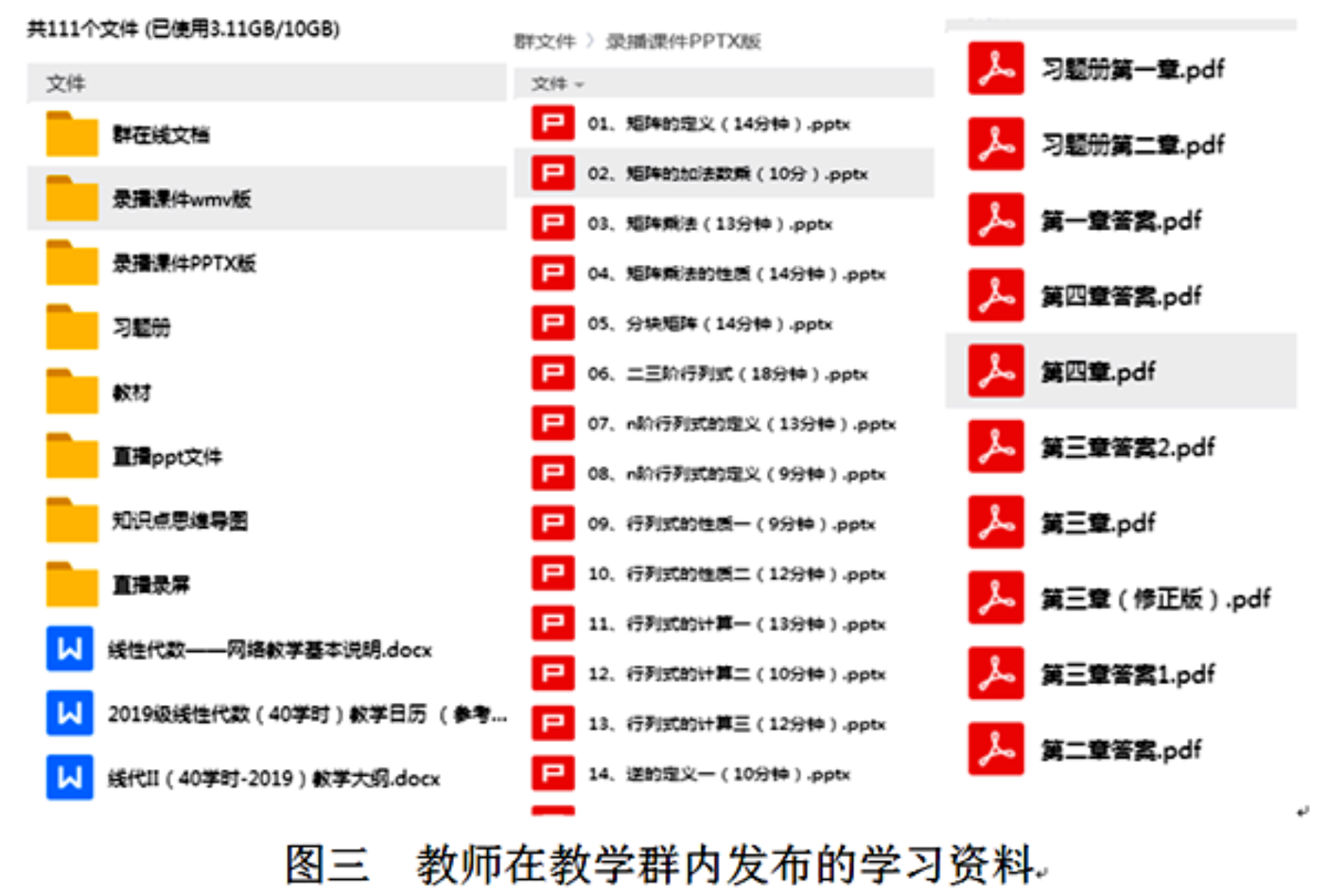 作为我校最早开始网络教学的数理类公共课,线性代数团队经过两三周左右的探索与实践,基本适应了网络教学工作,形成了相对固定的“录播+直播+答疑”的教学方式。