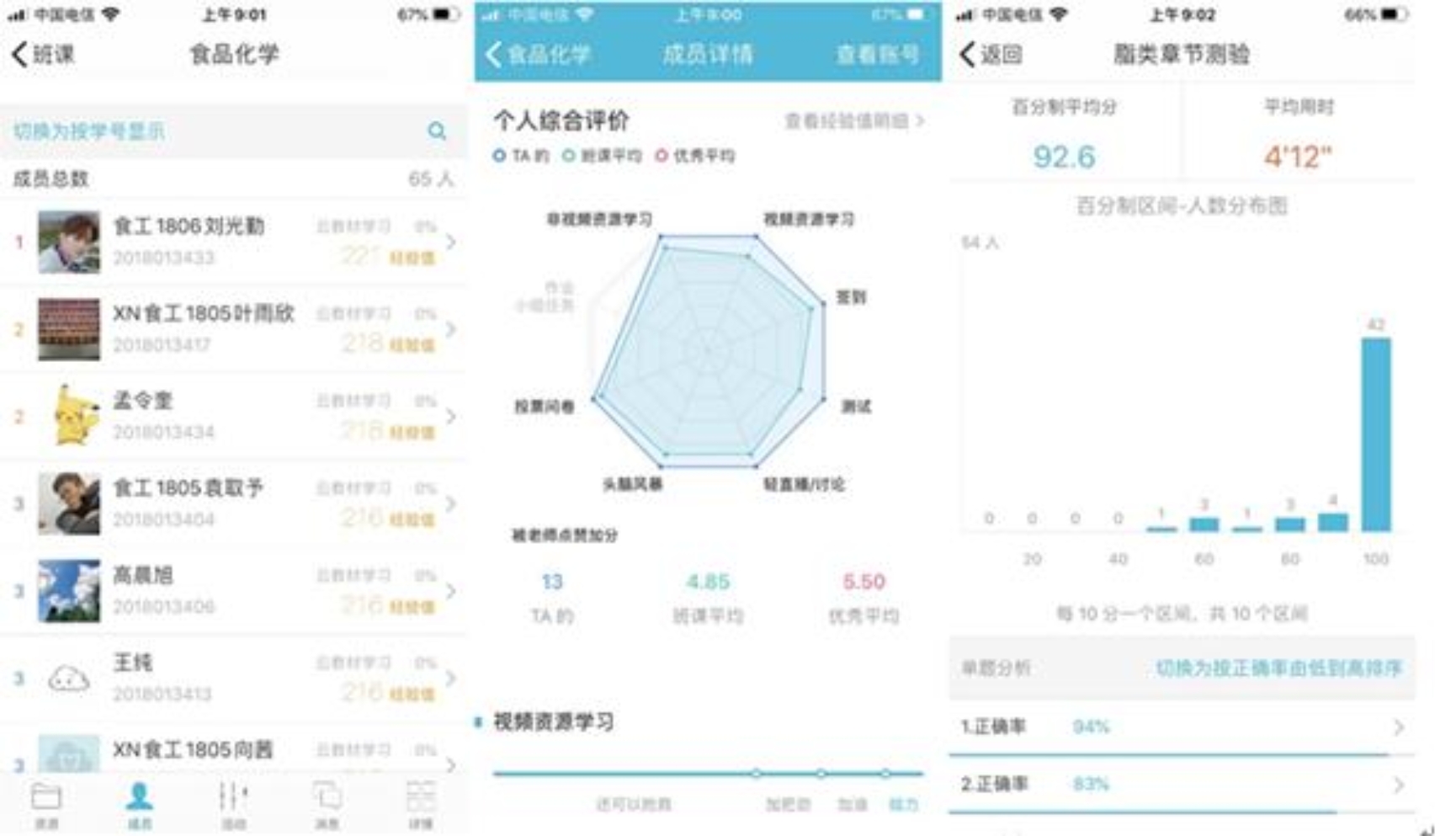 针对新冠疫情下延期开学不停学的情况,食品化学课程组学习和了解了多个网络课程教学平台,采用网络直播和以现代信息技术为支撑的“云班课”相结合的方式教学,实现了教学过程中学生学习效果信息数据的采集、存储与分析,并依据分析结果对学生的学习行为进行判断并不断改进教学设计,动态掌握学情,优化教学活动,激发学生学习的主观能动性。